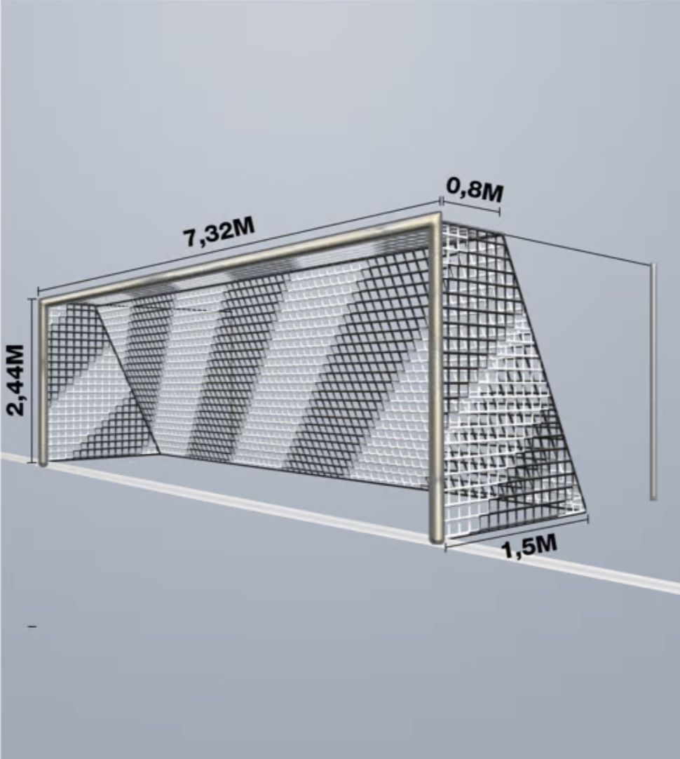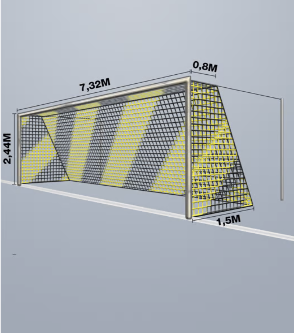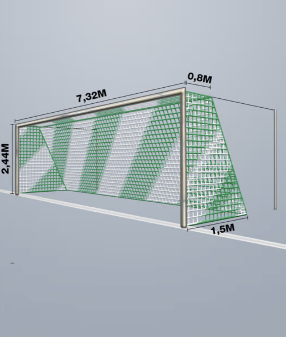 11-mands Fodboldnet - 7,5 x 2,5 x 0,80/1,50M - 2 Farvet - Sæt